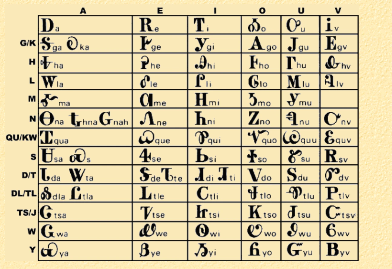 The Cherokee Syllabary, developed and made by Sequoyah.